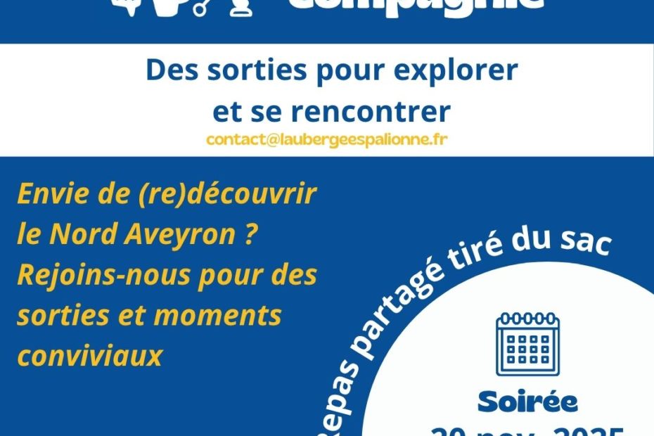 Accueil de néo-aveyronnais avec Sortir et Compagnie 👋 📣1er Rendez-vous : le jeudi 20 novembre à 19h30 au Café de L’Auberge espalionne, 5 rue du Dr Trémolières à Espalion! Que ce soit en solo, en couple ou en famille, Sortir… Lire la suite »Sortir et Compagnie 🥰
