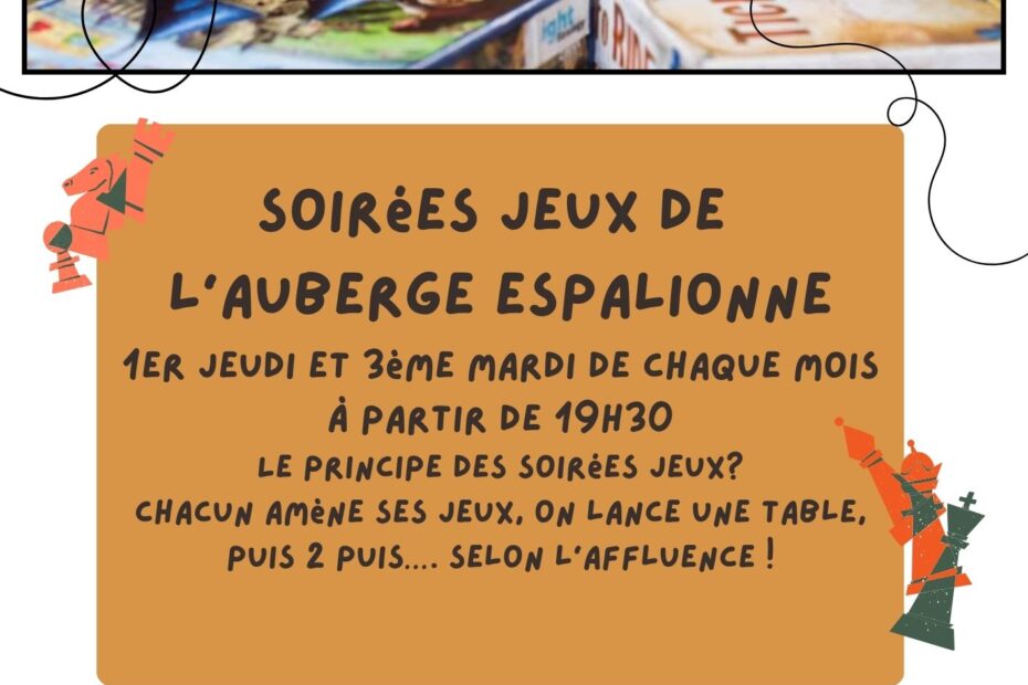 Prochaines soirées jeux : 🗓Jeudi 2 avril 🗓Mardi 21 avril 🕠 19h30 ⚠️ Les soirées jeux de l’Auberge, c’est le premier jeudi du mois et le 3ème mardi du mois. 📍 Local de l’Auberge – 5 Rue Dr Trémolières –… Lire la suite »SOIRÉES JEUX – AVRIL 2026