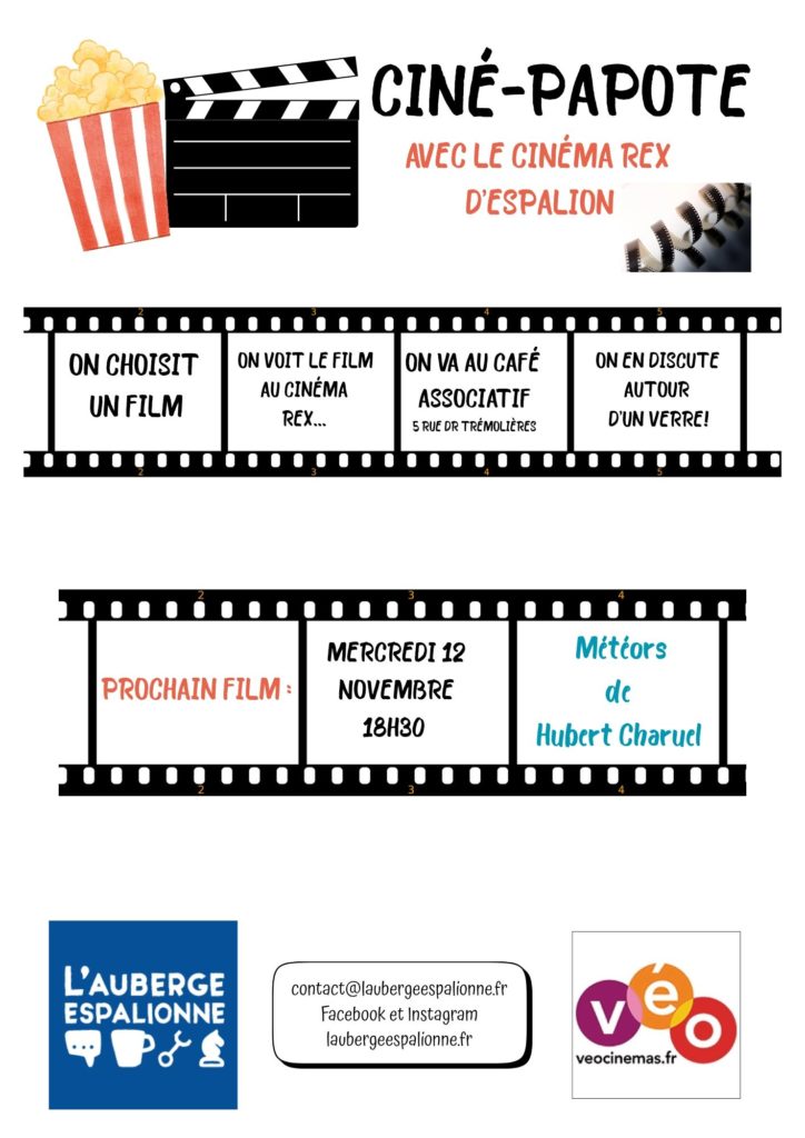 👉Le principe? On visionne un film au Cinéma et à la sortie, on en discute ensemble au Café de L’Auberge Espalionne 5 rue du Dr Trémolières.