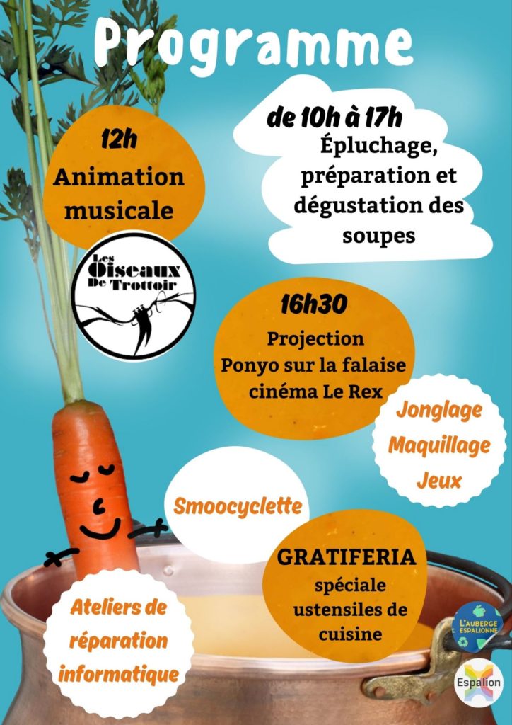 L’Auberge espalionne vous convie à sa 6ème Soupe anti-gaspillage et participative le samedi 18 octobre de 10h à 17h! 🤩👨‍🍳🥳