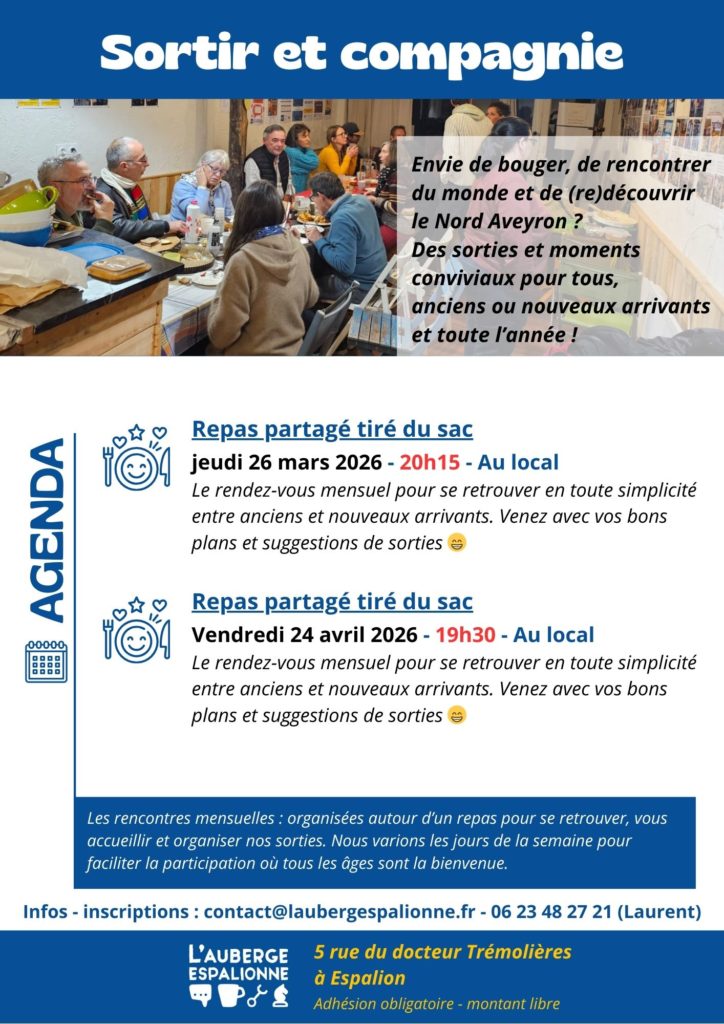 Envie de bouger, de rencontrer du monde et de (re)découvrir le Nord-Aveyron ? Des sorties et moments conviviaux pour tous, anciens ou nouveaux arrivants et toute l’année !