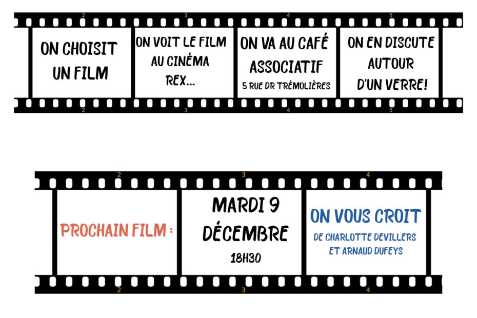 Pour le 3ème Ciné-Papote, on se retrouve à 18h30 le mardi 9 décembre au Cinéma Rex pour le film On vous croit de Charlotte Devillers et Arnaud Dufeys (1h18) puis vers 20h, on échangera nos impressions autour d’un verre et… Lire la suite »Ciné-Papote 🎞